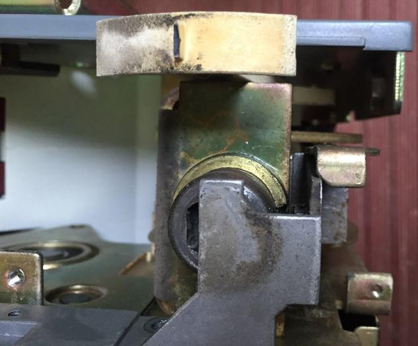 停好电,准备摇出开关。问题出现:开关摇进摇出挡板故障,摇柄无法插入!开关无法摇出,只好先拆除开关面板,再将开关摇出。 开关落地,先解决问题再做维保,经过细致的检查,问题发现:摇进摇出机构松动,开关摇进后连杆卡住了挡板,挡板无法正常活动。发现问题立刻处理,挡板活动恢复正常后,解决了客户的心头之患!
