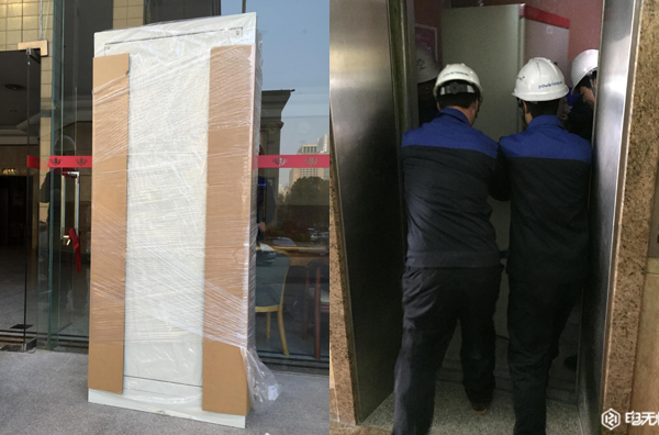 南京某著名连锁酒店,位于南京市一座颇具历史的商厦之内。商厦建设已久,电力设备年久未修缮,用电可靠性不能得到保证并且存在着一定的安全隐患,为此酒店物业委托电无忧队对5、6层配电间进行双电源改造,增强供电可靠性。 动力柜、电缆准时运到施工现场。好家伙,不过再大咱也不怕,齐心协力准备上楼!