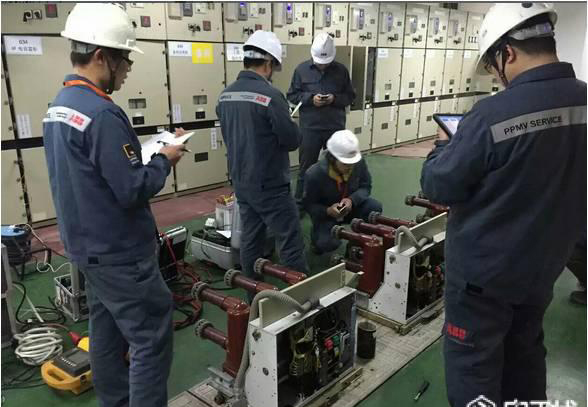 凌晨四点,一辆承载着电无忧最优质服务理念的工程车照亮了漆黑一片的苏州大道,电无忧联合厦门ABB中压服务团队对苏州某大型企业8台VD4进行原厂级维保服务。通过行业最顶级最专业的服务,让用户在夏季高峰前进行一次全面维保检修,杜绝任何电力故障隐患,让用户在夏季高峰即将到来之际电无忧。 到达现场后,首先与用户进行准备工作沟通。停电后,8台待维保开关依次退出排成一排,检测设备仪器依次闪亮登场,拉起安全隔离警戒线,准备工作井然有序。