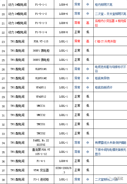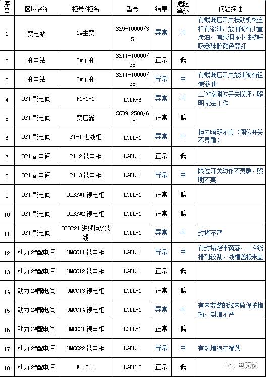 # 一次无损探伤居然查出63处异常!谁敢说小检查没有大作用! ## 服务背景 电气安全无损探伤各位老司机们都不陌生,他最大的特点就是可以在电气设备不停电的情况上,全面,详细的检测设备的带电运行情况,并将数据反馈给用户,从而实现电气设备运行数据的在线监控,做到提前预知故障隐患,保证电气设备的安全运行,特别适合停电机会少,投运5年以上且要求连续供电,一旦发生故障性停电危害大的企业使用。 就是因为他是一项不用“大动干戈”的检查,就往往有很多用户忽视了这项检查的必要性,觉得只是一项小检查,做与不做,无伤大雅!但,小检查真的就没必要么?今日,电无忧团队为南京的一家特种纺织品有限公司实施了一次全面的电气安全无损探伤服务,最终得到了63处异常的检测结果,触目惊心! ## 服务内容 本次电气安全无损探伤服务共耗时2个工作日, 检测范围包括:配电室巡视检查、配电房温湿度检测、柜体震动检测、配电房及柜体附近噪音检测以及红外热成像检测,并出具专业的评估检测报告 1份。 使用的仪器为:红外热成像仪、噪声检测仪、震动检测仪、温湿度检测仪。 ## 服务过程 ### 1、元器件缺陷检测: 检查元器件外观,机构,功能,显示是否正常。 ### 2、运行异声检测: 利用噪声仪测量电气设备运行时的噪声。检测时,保持安静,将噪声仪放置在配电环境中,确保读数精确无误。  ### 3、运行温度红外成像检测: 利用红外热像仪,对电气设备易发热处,进行细致的检测,探测设备异常发热隐患。  ### 4、运行震动检测: 将震动仪贴在电气设备外壳上,检测设备震动情况。  ### 5、配电房温湿度检测: 利用温、湿度仪测量配电房环境温湿度,预防湿度过大环境下,因室内、外温差而导致的凝露现象的发生。  ### 6、变电所五防及安全用器具检查: 检查变电所五防装置,1、防止误分、误合断路器; 2、防止带负荷拉、合隔离开关;3、防止带电(挂)合接地线(开关); 4、防止带接地线(开关)合断路器(隔离开关);5、防止误入带电间隔.及安全用器具的功能、外观、和使用日期。 ## 服务结果 经过全面的电气安全无损探伤检测,电无忧专家团队在该企业配电房中发现了多达63出异常。 *检查结果汇总表:*    *(截取部分数据展示)* ## 警示 看似“小打小闹”的电气安全无损探伤检测,查出的一个个看似“无伤大雅”的异常,但,往往就是因为这些我们忽视的小问题,最终引发了不可挽回的大事故,作为一名电力人,严谨、专业、认真、不放过任何细节,是我们必须严格遵守的职业操守,这是我们的责任,也是我们为千家万户送去光明的自豪。
