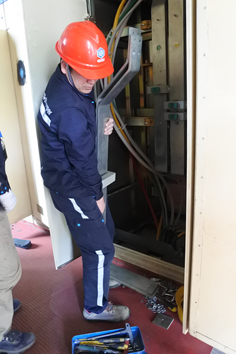 #历时12个小时,电无忧让“他”改头换面 ##项目背景: 苏州某联合汽车工业有限公司10kV变电所400v开关柜无故跳闸。  ##原因分析: 由于开关使用年代较长,比较老旧,控制器里的电子元器件老化,导致误发跳闸信号。 经过电无忧工程师现场勘察,决定实行低压开关柜改造,更换一台新的断路器。  ##项目难点: ###1.施工时间短 甲方给我们的施工时间是从早9:00至晚上17:00,一共8个小时,但为保证质量,我们要求需12小时完成此次更换断路器工作,提出要求后经客户多方沟通,给到此次更换断路器的施工时间是12小时。  ###2.前期勘察不可预知因素多 前期堪察是在设备带电正常运行时进行的,设备带电,意味着我们堪察时只能看到表面,内部好多的信息不能一一确认,而老的开关成套设备与现行的相比又有诸多不一样的因素,故也不能推测,所以此次堪察掌握到的信息只能达到70%,这对我们后面施工会带来诸多不利的因素。电无忧工程师前期勘查后提出了很多假设,将可能会需要的技术资料以及设备工具准备齐全,加上多年的工作经验,大胆假设小心实施。   ###3.施工环境差 现场潮湿且无照明,虽然我们备好了发电机和临时照明,但是施工时还是不方便,在如此恶劣的环境下坚持12小时,完成项目。  ###4.施工工作量大 此次改造要拆除ABC三相各10米水平双拼母线,开关本体上端ABCN分支母线,及下端ABCN分支母线,工程量较大。由于运行年代久远,热胀冷缩效应,大部分母线固定螺栓都不能顺畅的拆下;要拆除开关本体的二次控制信号线;要拆除老的抽架;要折弯新的铜排;母线恢复;二次控制信号线恢复调试。     ##结语 历时12个小时,从前期勘察准备,现场照明不足到工作量极其大的拆除母线,电无忧工程师克服重重苦难,成功更换开关,漂亮的完成了项目,得到了客户的肯定。