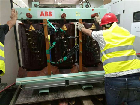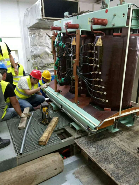 # 20载风雨 新老变压器的改朝换代!尽一份微薄之力,走一条持续之道。 ## 项目背景 某大型德资企业生产设备对供电电压要求非常高,电压波动会对设备的正常工作造成影响,甚至会导致不合格品的产生,给企业带来损失。 而老厂的1#、2#变压器已经连续运行20年,有载调压开关及调压控制器的使用寿命已逼近极限,调压稳定性达不到可靠保障,容易给企业带来不必要损失!为此,该企业工程师购买两台新式有载调压开关准备用于替换老旧的有载调压开关,经电无忧工程师现场查勘后发现新式开关与原有两台变压器并不能在功能上匹配,若想企业用电能可靠安全,需将两台老变压器更换成新式变压器(SCRZ11-1000/10/IP00 满足NX2能效等级),与新式有载调压开关一起为企业用电保驾护航! ## 项目过程 本次项目共进行4天,需要保持2天从拆卸到更换1台变压器的工作节奏。工作强度大,工作进程紧是本次项目的特点;工作空间小,工作环境奇是本次项目的困难。 ### 工作环境奇 原有配电房在二楼,一次设备安装在80公分高的基础上,且周围铺满了镂空钢板,变压器安置在比镂空钢板高的基础上,需要在变压器周围敷设一个小的平台,这给起重工作带来了不便;   基础与开墙的吊洞之间敷设了电缆桥架,需要敷设一段吊装平台连接基础与开墙的吊洞;  ### 工作环境小 针对1#变压器来说,1#变压器与3#变压器“门当户对”,3#变压器外壳与1#变压器次总柜之间距离刚好能允许变压器横着通过(在1#变压器外壳拆除的前提下),而2#变压器外壳与对面低压柜之间距离不允许变压器横着通过,只能在中间空间大的部位将变压器转身90度,竖着通过,两侧的设备并未停电,在操作上带来了一些影响,增加了施工难度。  厂房设计当初,层高并未设计的很高,变压器转移至吊孔处是放置在新增的吊装平台上,此时变压器距厂房顶部距离并不是很高,这个吊车吊臂的伸展带来困难,对吊车的操作水平具有很高的要求!   两天的功夫从拆除到更换一台变压器,工作进程非常紧凑。原有有载变压器拆除(包含外壳,有载开关,变压器与次总柜连接母排,高压电缆头,变压器接地系统)、吊装平台安装、原有变压器移除并吊至地面、新变压器吊装、新变压器罩壳安装、一次排制作、变压器基础制作,新的接地系统制作,有载连接线制作,二次线连接,外壳安装,电缆搭头,变压器的交接试验等等一系列工作需要做到有条不紊,确保用户能准时送电。 变压器转运过程,隔壁邻居可是带电的哦,服务人员要小心啦!  原有有载变压器拆除, 新旧变压器的空中姿态,旧的去,新的来,穿上外衣,又是一片新气象。默默奉献20载,退役前的那一刻,敬礼!   电无忧工程师经过4天的坚持不懈,两台变压器顺利完工!成功高效的完成了变压器新老朝代的交接仪式,为企业正常运转保驾护航!