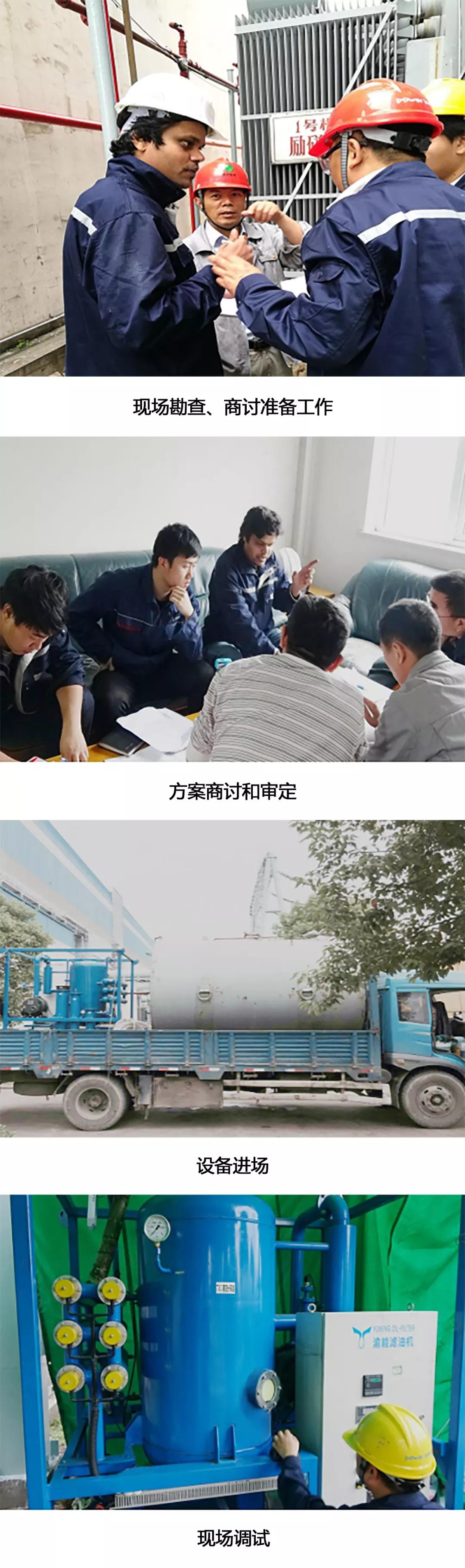 ## 一、项目背景 扬州某电厂是一家特大型火力发电企业,其#1机组的励磁变压器由美国弗吉尼亚变压器有限公司生产,并于1998年10月正式投入运行。该变压器连续运行将近20年,尚未进行过大修,但在最近几年常规的预防性试验中发现,该变压器高、低压线圈的直流电阻数据显示异常,同时,通过油样化验结果分析表明变压器内部存在低温过热现象。 受电厂委托,我司于今年5月承接了对这台变压器实施修复的工作。项目勘核阶段,我们多次与美国弗吉尼亚变压器有限公司美国总部的技术团队进行沟通,就试验和分析报告中所述的各种异常现象进行了探讨,并在项目实施前,顺利邀请到了该公司资深技术专家Praveen Prajapati 先生作为此项目的技术指导全程参与了现场情况勘核、修复方案制定、现场施工设备配备、检修工程人员的选拔考核、实施前的安全培训以及现场作业。在我司变压器服务团队工程师、厂商技术专家Prajapati先生以及电厂方的技术专工三方的共同努力下,历时9天时间,顺利完成了该励磁变压器的修复工作。  电无忧变压器团队、Prajapati先生及电厂专工现场合影 ### 二、项目实施前的各项准备 “磨刀不误砍柴工”,为迎接这场硬战变压器团队有效落实了各项配套措施,确保检修工作万无一失。  ## 三、施工步骤 #### 1、确定操作条件 开始操作时,首先测量了温度与湿度,仪表显示满足作业要求。  温湿度表 #### 2、变压器试验 根据技术方案书,进行变压器内部检查处理前、后都需要对变压器进行相关项目的试验,具体试验内容如下: (1) 变压器油的色谱分析、工频耐压测试; (2) 高、低压侧绕组的直流电阻的测试; (3) 高、低压侧绕组的绝缘电阻、吸收比和极化指数的测试; (4) 高、低压侧绕组的介质损耗(tgδ)的测试; (5) 高、低压侧绕组的泄漏电流测试。  现场变压器试验 #### 3、变压器放油 (1)检查试验完成后,用滤油机对变压器进行放油处理。  放油 (2)打开变压器顶部的人孔门。从打开的人孔门处,向变压器内注入干燥的空气。  变压器内部人孔 #### 4、变压器内部检查和处理 在进入变压器内部前,需通过氧气浓度测试仪测试变压器内部空气中氧气的百分比浓度,以确保操作人员安全进入。 随后,我司检修人员周工穿着专用工作服和绝缘靴进入变压器内部,对故障点进行排查和处理。  内部施工 #### 5、变压器整体恢复 处理完变压器相关问题后,需要恢复变压器。步骤如下:(1)打开变压器上的真空阀,用真空滤油机对变压器抽负(133pa) (2)对变压器实施真空注油(注油到变压器油位表25℃位置处)。 (3)从顶部向变压器内充入N2,做整体密封检查试验。N2压力为20kPa,每小时观察压力泄漏情况,表压无变化。 ### 6、变压器交接试验 变压器恢复后需对电气做验收试验,这次检测与作业前的检测仅有最后一项有差别,最后油注入后需静置24小时,再进行交流耐压试验。  1机组的励磁变压器 该项目,是我司技术团队首次与国外厂商技术专家协同作业完成,也是在电厂行业业务上的一次新的突破。我司变压器服务团队的工程师们,充分展现了追求卓越、专业高效、团队至上、坚持不懈的公司理念,获得客户方的一致好评。 ## 【番外】 钻到变压器里面去工作,小编单纯想一想就是非常危险的动作,但是这对于我们现场服务工程师来说却是日常。 小编作为项目随访者,怀揣着千万分的好奇,趁我们服务工程师老周休息时,问了问他在变压器里时的感受。老周憨憨一笑,认为确实不值一提,作为“身经百战”的工程师,类似的工作经历了太多,完成目标动作才是重中之重的事。认真仔细排查故障点,按照技术方案完成标准操作。同时检查其他所有电气连接点的紧固情况,完成加固,以确保试验结果中出现的问题得到完全解决。当然,在整个过程中,因为操作空间狭小,最需要注意的就是个人安全了。 看来周工在忘情工作的时候已然专注到忽略个人感受了。小编不甘心,又采访到变压器团队中的张工,问他第一次进入变压器内部有什么感觉,这次小编特别强调了,是个人的感觉。张工想了想,特别认真的回了小编四个字:湿、热、闷、滑,让小编自己去体会…  让小编感叹的是,他们的回答都是非常简单平淡的描述,却更多地体现出技术人员的专注与专业。我们可以想象面对如此狭小而恶劣的作业环境,极大地考验了技术人员的专业素养。 值得一提的是,在历时一个多小时的施工过程中,周工只出来喝了几口水,休息了几分钟又进入变压器内部继续投入工作了。 项目结束后,小编有幸陪同Prajapati先生游览了南京城,还帮他挑选了给妻子和孩子的礼物。Prajapati先生是印度人,思维发散,风趣幽默。他说他来过中国好几个城市,但都是因为工作,这次很幸运,可以有半天的时间,看一看中国的六朝古都。他还说,他算是中国这几年飞速发展的见证者, 尤其是中国的高铁,他还没有机会体验过,将来有机会的话,一定一定要带家人来中国旅游,带他们一起感受中国的悠久历史和现代化发展。  合影留念 我们是江苏电无忧,一个有态度、有温度的企业。