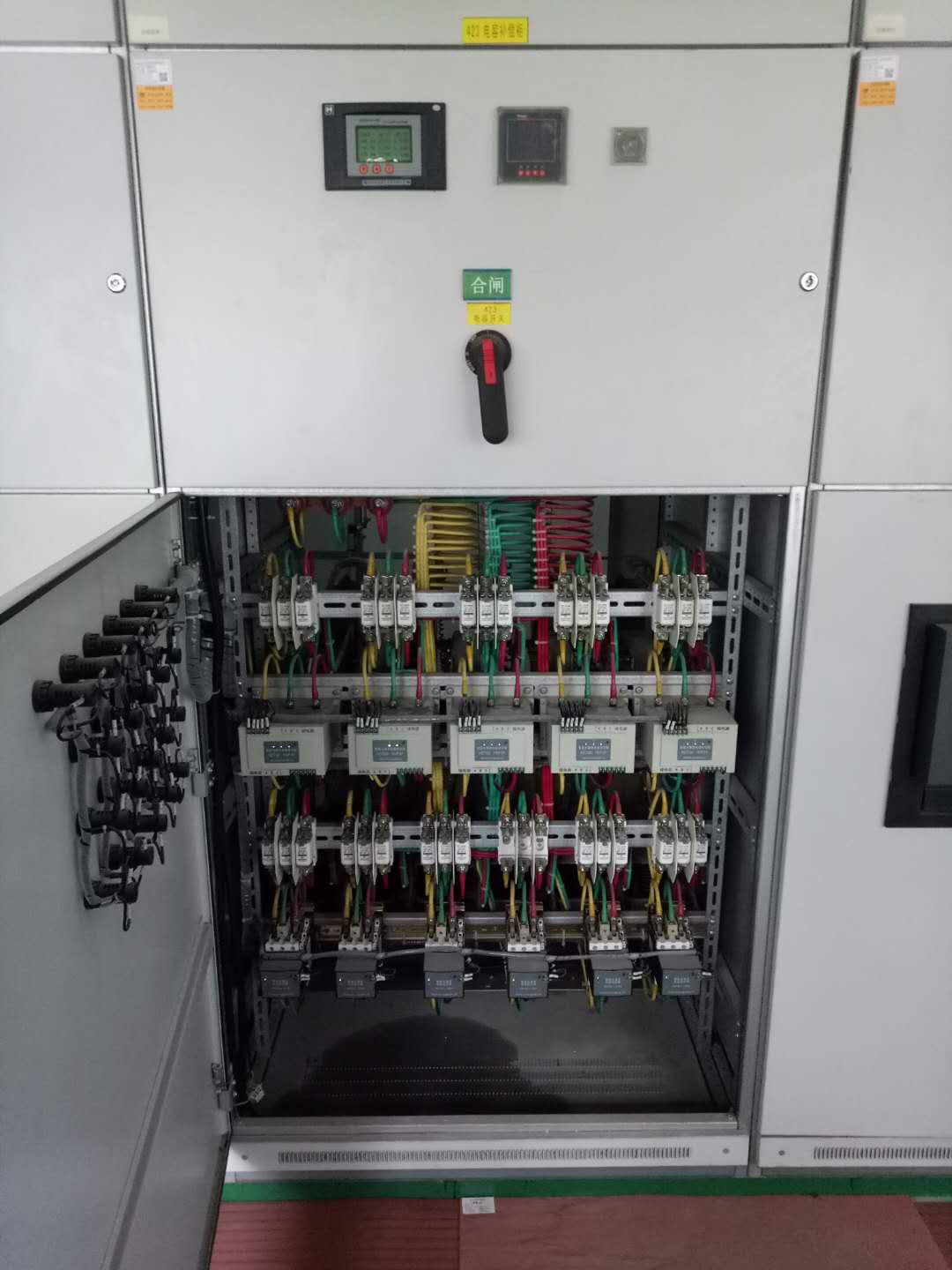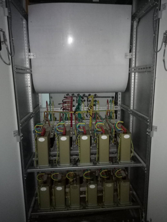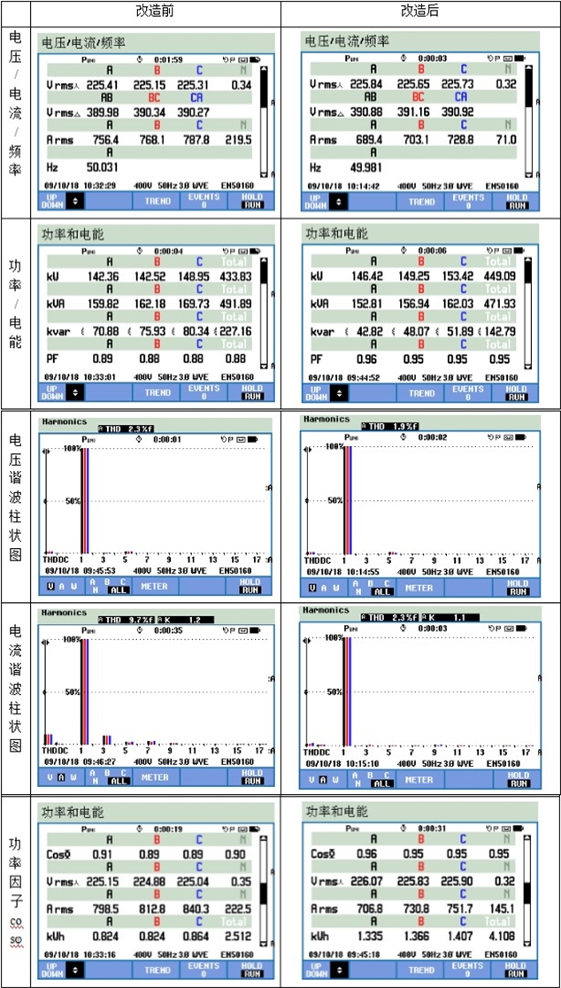 #### 一.项目背景 某精密配件有限公司创立于2002年,主要业务是精密模具制造、板金冲压加工、数控冲压加工、自动冲床加工、及精密电子配件组装。供电系统为10KV进线与3台配电变压器(2X2000KVA+1600KVA),平均负荷率为50%,低压电容补偿系统为TSC(晶闸管投切电容补偿)系统。负载性质为冲击性、三相不平衡、谐波。此次进行1#、2#变压器低压集中侧的SVG改造。 #### 二.问题描述 电无忧电能质量服务工程师到达现场发现,正在运行的2套电容柜有几组电容已出现漏油鼓包,电感连线烧毁现象,存在极大的安全隐患。客户反映,设备通电开始运行的一年半时间内,出现过几次炸电容事件,并引发了停电事故。由于谐波等电能质量问题恶化严重,车间精密数控设备电源侧不得不增加稳压器进行隔离处理。为防止电容电抗再次“炸裂”,值班电工只得每隔两小时进行一次电容柜巡检工作。  电无忧电能质量工程师现场测试   现场电容补偿系统   现场鼓包电容以及电感连线烧毁 #### 三.解决方案 电无忧电能质量工程师们针对现场出现的电能质量问题进行了深入分析,最后制定了最适配的解决方案: 1.对原有 1#、2#变压器的电容电抗补偿设备进行“手术”——改造电容电抗,加装SVG模块;  一次改造接线图  二次改造接线图 2.针对此次强电带电在线改造作业,电无忧团队编制严格的安全作业计划,并在施工前对现场进行了精确勘测,以确保安装尺寸无误; 3.在保证安全作业施工的前提下,为尽可能减少停电作业时间,设计了四个施工阶段: 1)0.5小时停电安全隔离施工阶段; 2)8小时带电施工阶段; 3)6小时停电施工阶段; 4)1小时运行调试阶段。 4.在正式施工前,技术负责人提前给各工序负责人做了技术交底,让大家熟悉了流程工序的同时,也让焊接及接线人员提前细致地消化了图纸。另外,电无忧工程师在施工前对各个工作点的相关作业人员、工作顺序做了细致安排,对时间节点进行了精确预估。  《电无忧施工方案》部分内容  带电区间作业隔离措施 #### 四.改造效果  改造前现场  改造后现场 改造后电能质量指标得到了改善,达到了预期效果: 1)基波电流IMAX:840A 下降至 IMIN:689A; 2)功率因子PF由0.88提升到到0.96; 3)Cosφ由0.89提升到到0.96; 4)THDu 由2.3%f变化为1.9%f 基本没有变化,小于行业要求,≤5%f; 5)THUi由9.7%f治理为2.3%f 有明显的改善,小于行业要求,≤8%f; 6)电压电流波形从数据上有明显的改善; 7)N线电流由219A降低为71A。  ------------ 在项目结束后,电无忧工程师们会对改造完成设备的运行状况进行定期巡查。  改造后回访服务